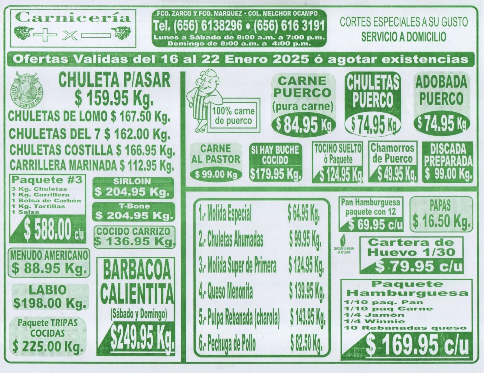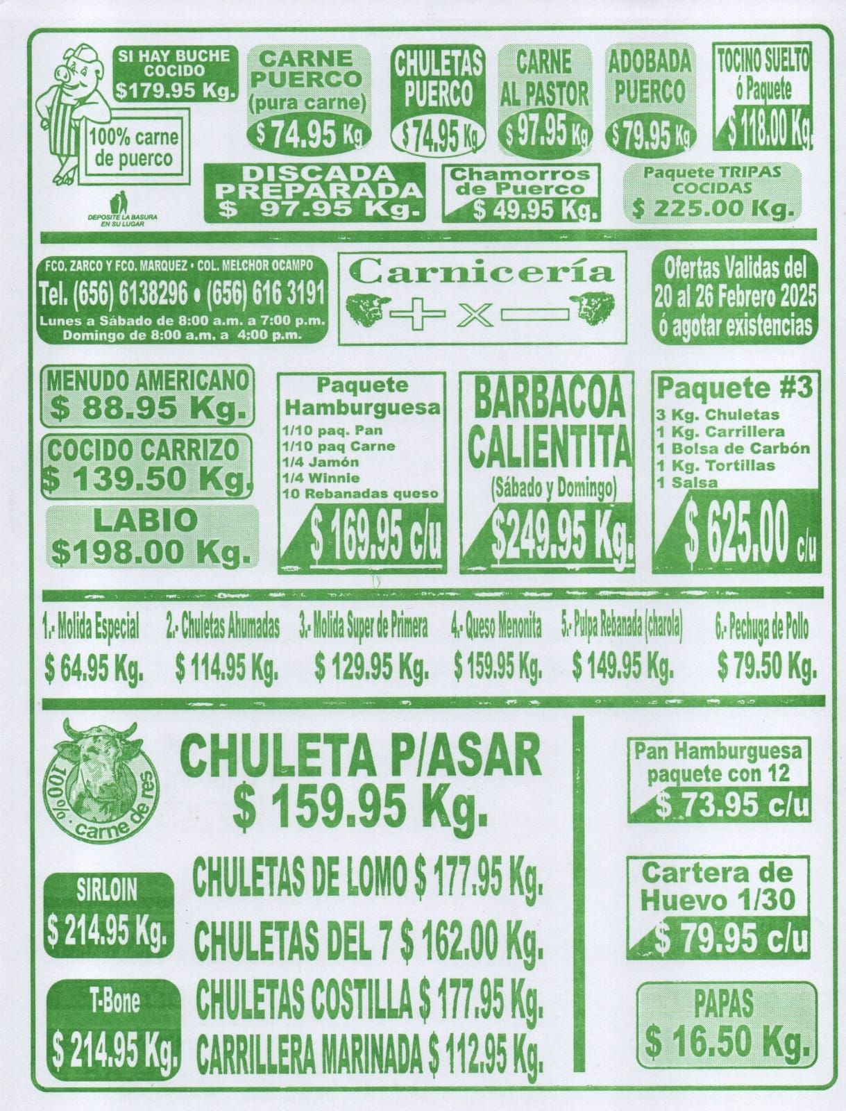 ¡Adquiere carne de la mejor calidad para preparar exquisitos platillos! En Carnicería Más por Menos ofrecemos la venta de carne de gran variedad, así como vegetales y abarrotes en Ciudad Juárez, Chihuahua. Desde hace 50 años destacamos como una carnicería de excelencia con un exquisito catálogo de carne de res, pollo, puerco, cortes, carnes frías, arrachera y mucho más.